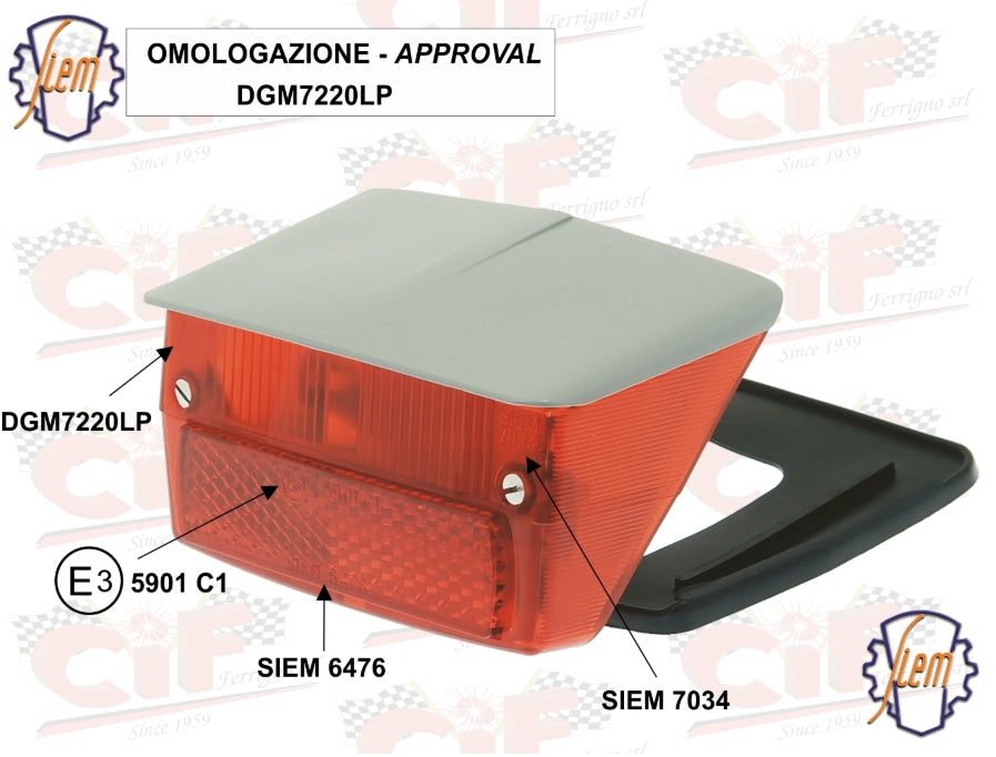 Rücklicht „ORIGINAL SIEM“ komplett mit Dichtung und Blende, grau